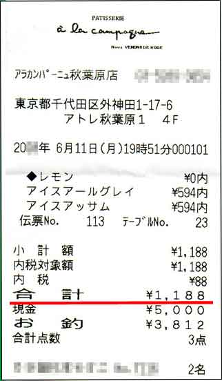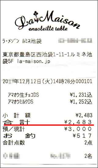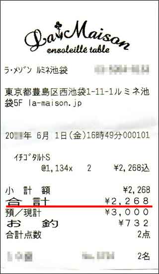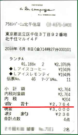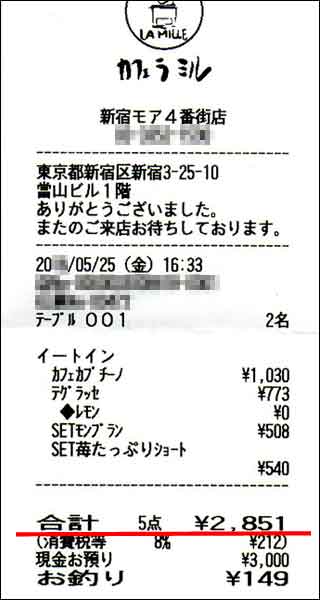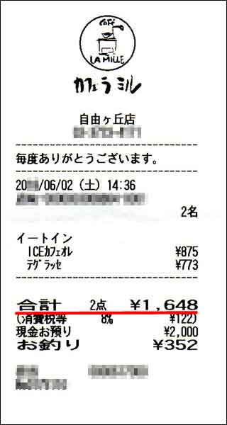 1回目の婚活デートの喫茶店・カフェの金額レシート